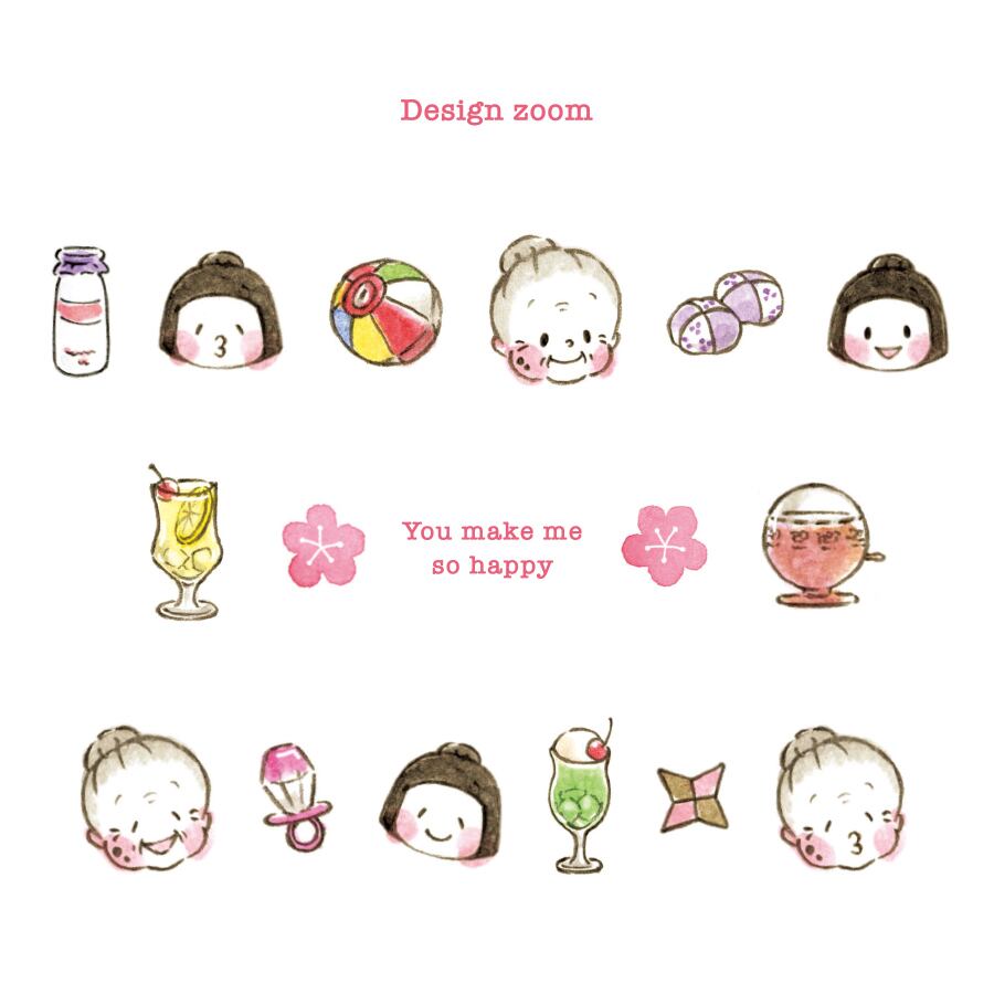 ふたりの笑い声が聞こえてきそうな表情と昭和のアイテムが、テープを引き出すたびに次々出てくる楽し懐かしいマスキングテープ。